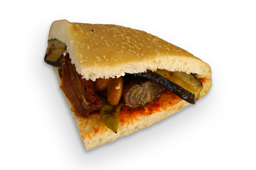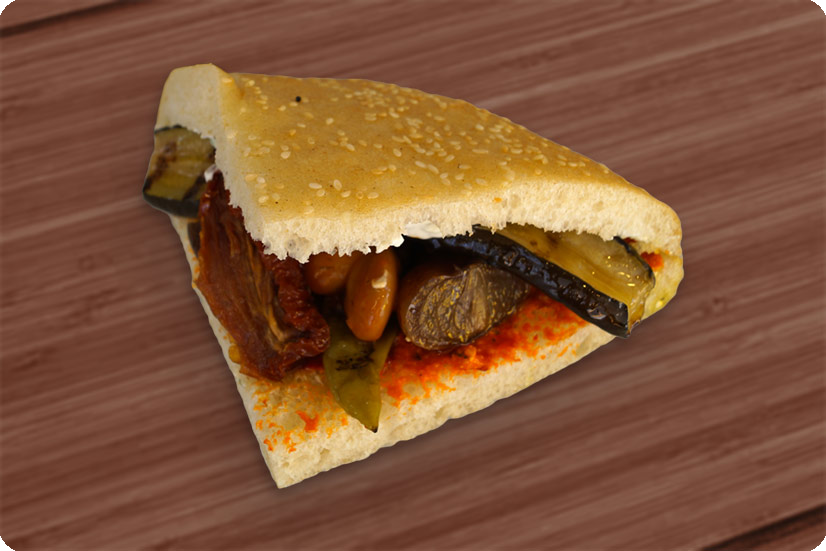 Der Genussfladen ist unsere eigene Kreation, die Sie so nirdendwo anders finden werden. Mit leckerem Ayvar und Tsatziki bestrichen, füllen wir ihn mit Oliven Artischocken, Riesenbohnen, Auberginen, gerösteten Balsamicozwiebeln, getrockneten Tomaten, Peperoni und gefüllten Champignons. Alle Zutaten sind natürlich austauschbar.